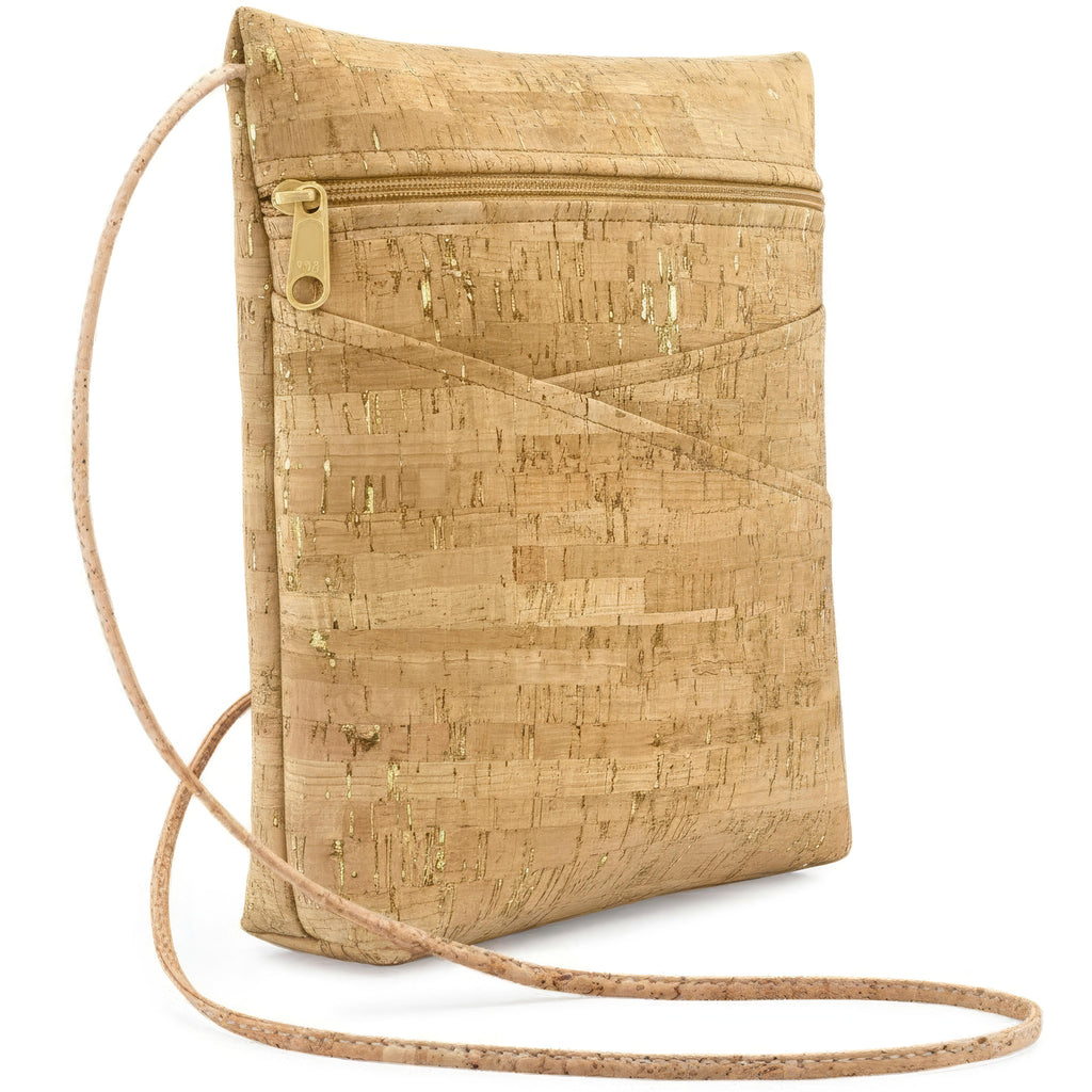 Cork Crossbody Bag with 2 Crisscross Pocket | Gold Flecked Cork