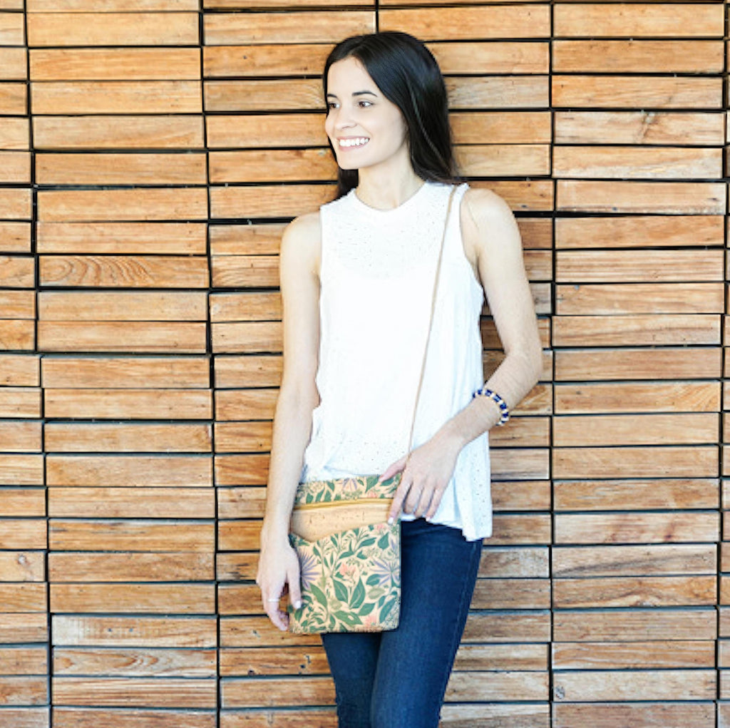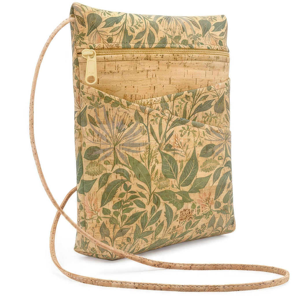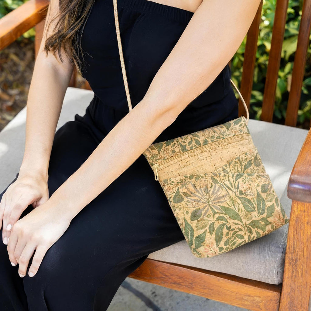 Cork Crossbody Bag with 2 Crisscross Pocket | Lush Botanicals Print