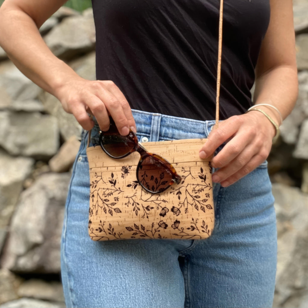 Simple, sustainable, and stylish, our Handmade Cork Crossbody Bag is the perfect everyday companion. Made in the USA from eco-friendly cork, this bag is lightweight, durable, and naturally water-resistant. It features a secure zipper closure on top to keep your essentials safe, along with one outside pocket for quick access to your phone, keys, or other small items.