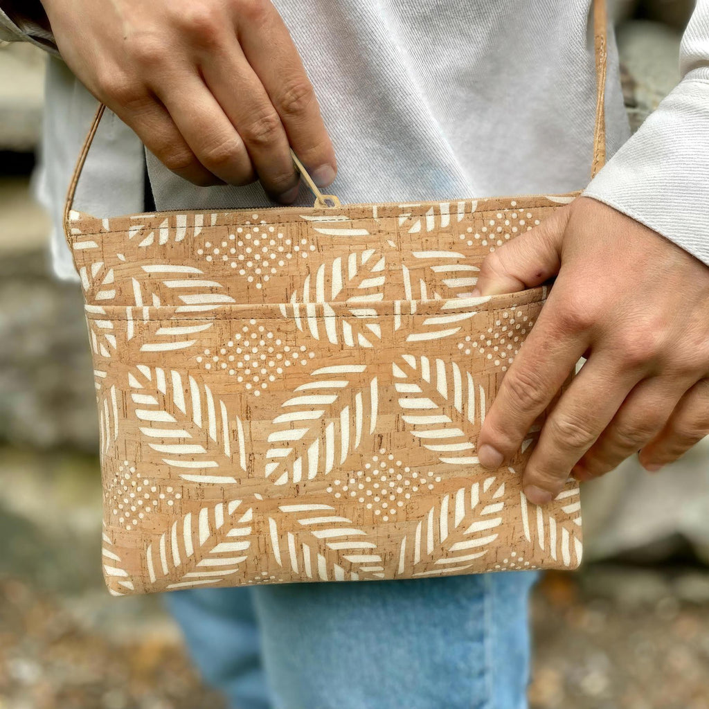 MEDIUM Cork Zip Top Cross Body Bag | Die Cut Palm Cork