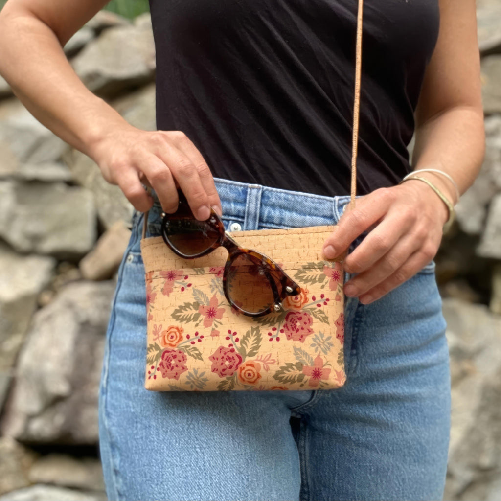 SMALL Cork Zip Top Cross Body Bag | Flourish Print