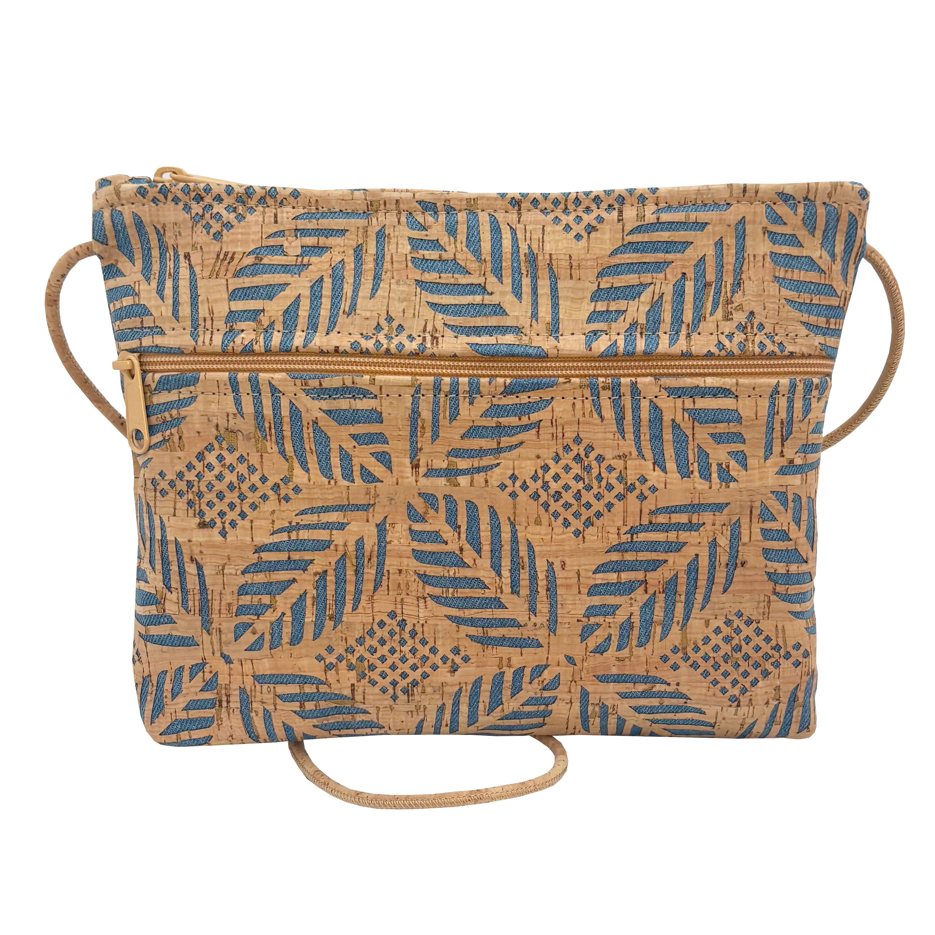 Cork Zip Top Cross Body Bag with Zip Pocket | Denim Die Cut Palm Cork
