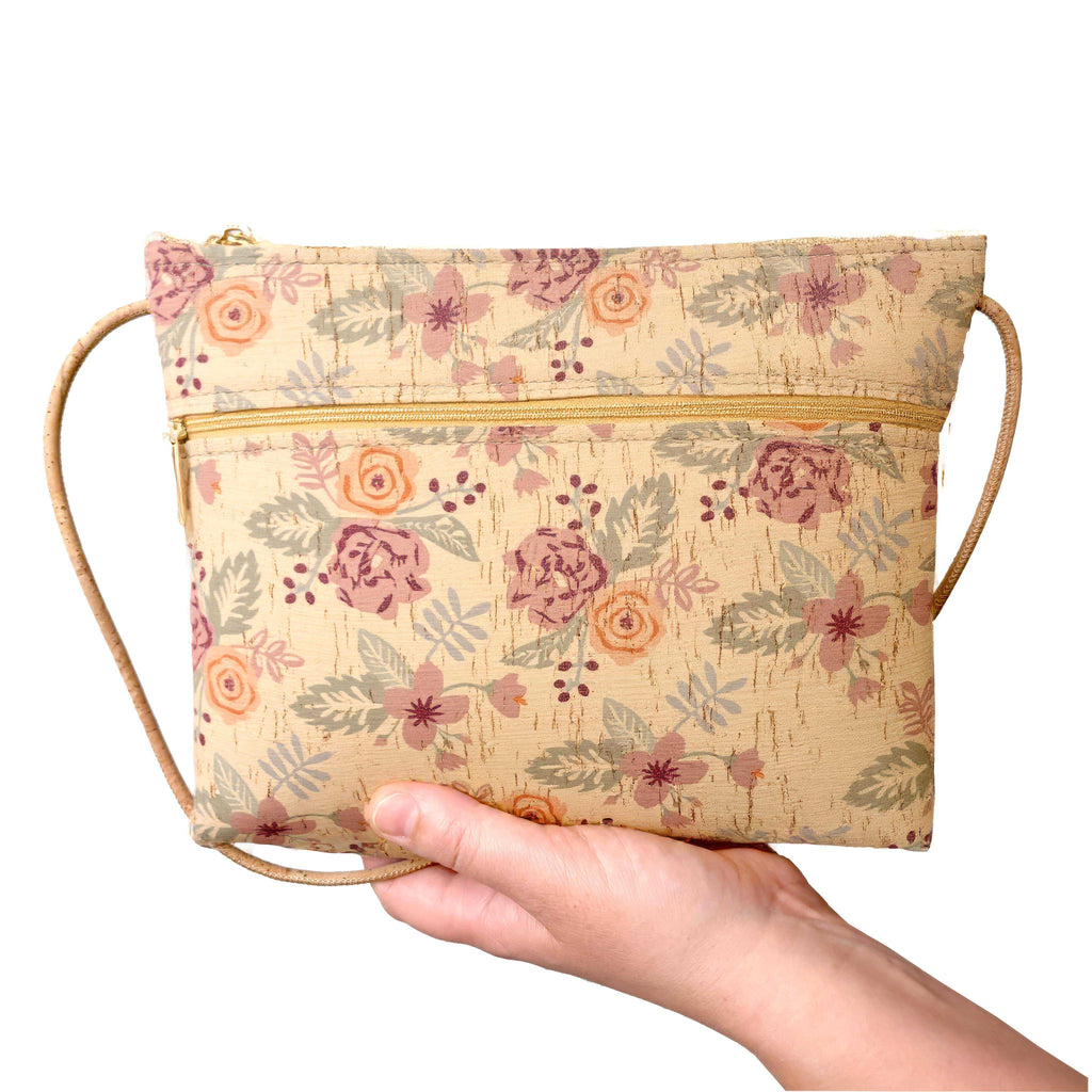 Cork Zip Top Cross Body Bag with Zip Pocket | Flourish Print