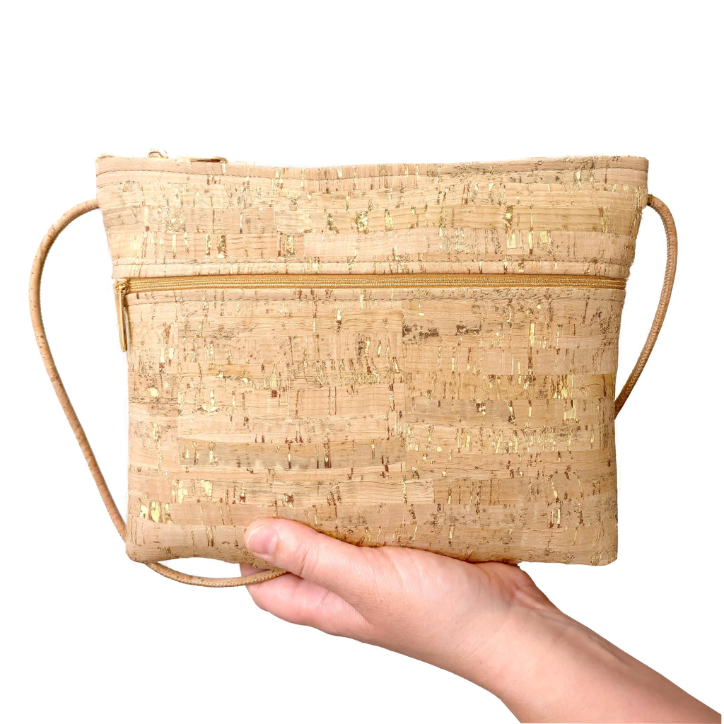 Cork Zip Top Cross Body Bag with Zip Pocket | Gold Flecked Cork