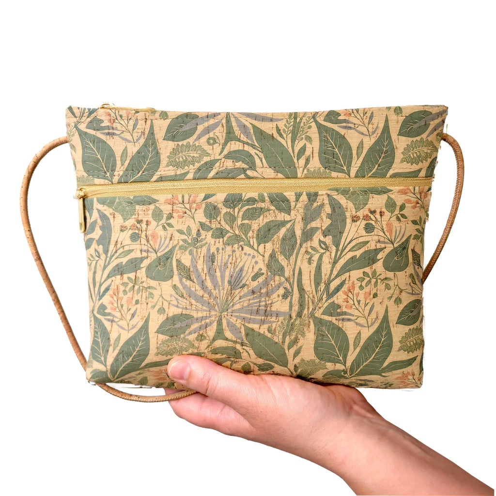 Cork Zip Top Cross Body Bag with Zip Pocket | Lush Botanicals Print