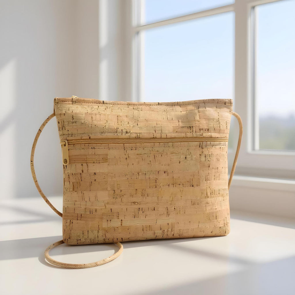 Simple, sustainable, and stylish, our Handmade Cork Crossbody Bag is the perfect everyday companion. Made in the USA from eco-friendly cork, this bag is lightweight, durable, and naturally water-resistant. It features a secure zipper closure on top to keep your essentials safe, along with one outside zipper pocket for quick access to your phone, keys, or other small items.
