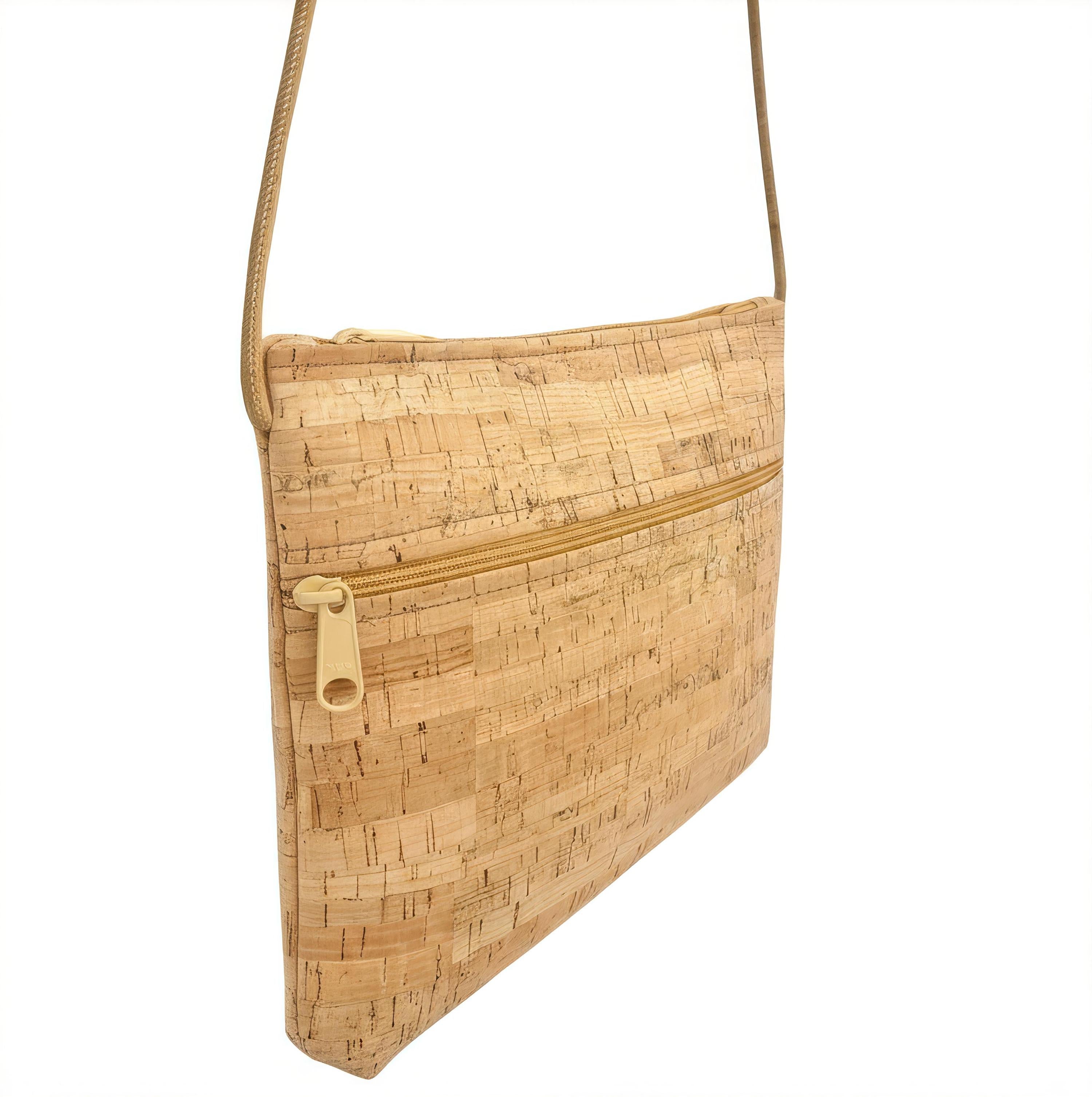 Cork Zip Top Cross Body Bag with Zip Pocket | Rustic Cork with Natural Zippers