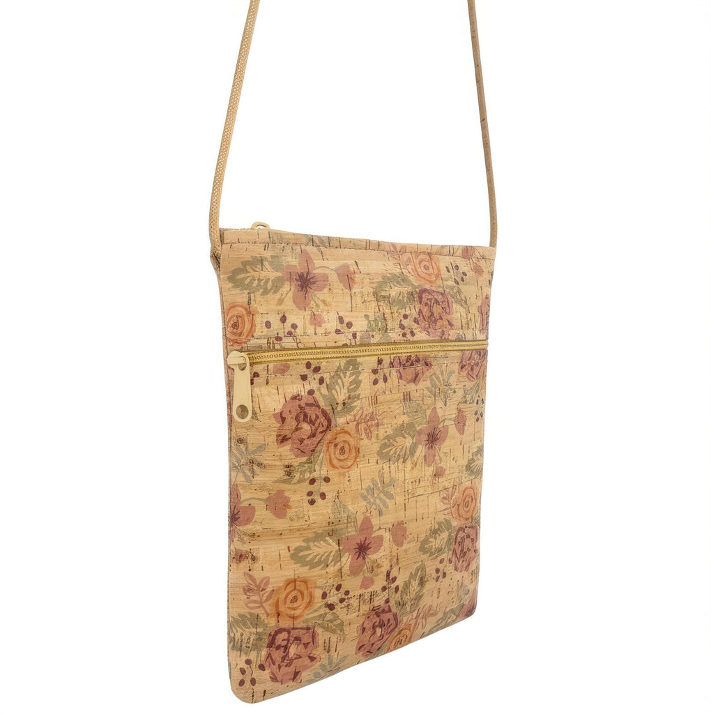 Cork Zip Top Vertical Cross Body Bag with Zip Pocket | Flourish Print