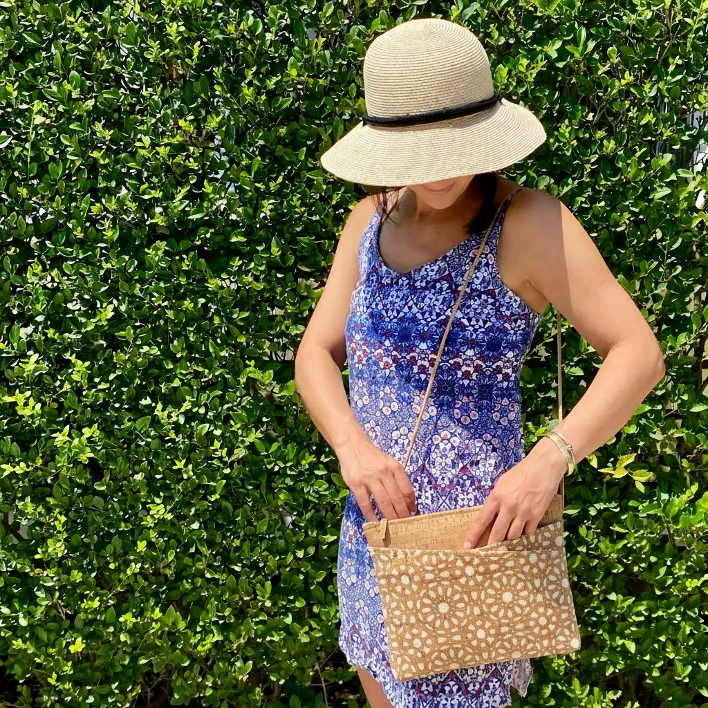 Eco-friendly and effortlessly stylish, our Handmade Cork Crossbody Bag is designed for those who value both functionality and sustainability. Made in the USA from durable, water-resistant cork, this bag features a secure top zipper closure to keep your essentials safe. With two outside crisscross pockets, it offers quick and convenient access to your phone, keys, or small items.