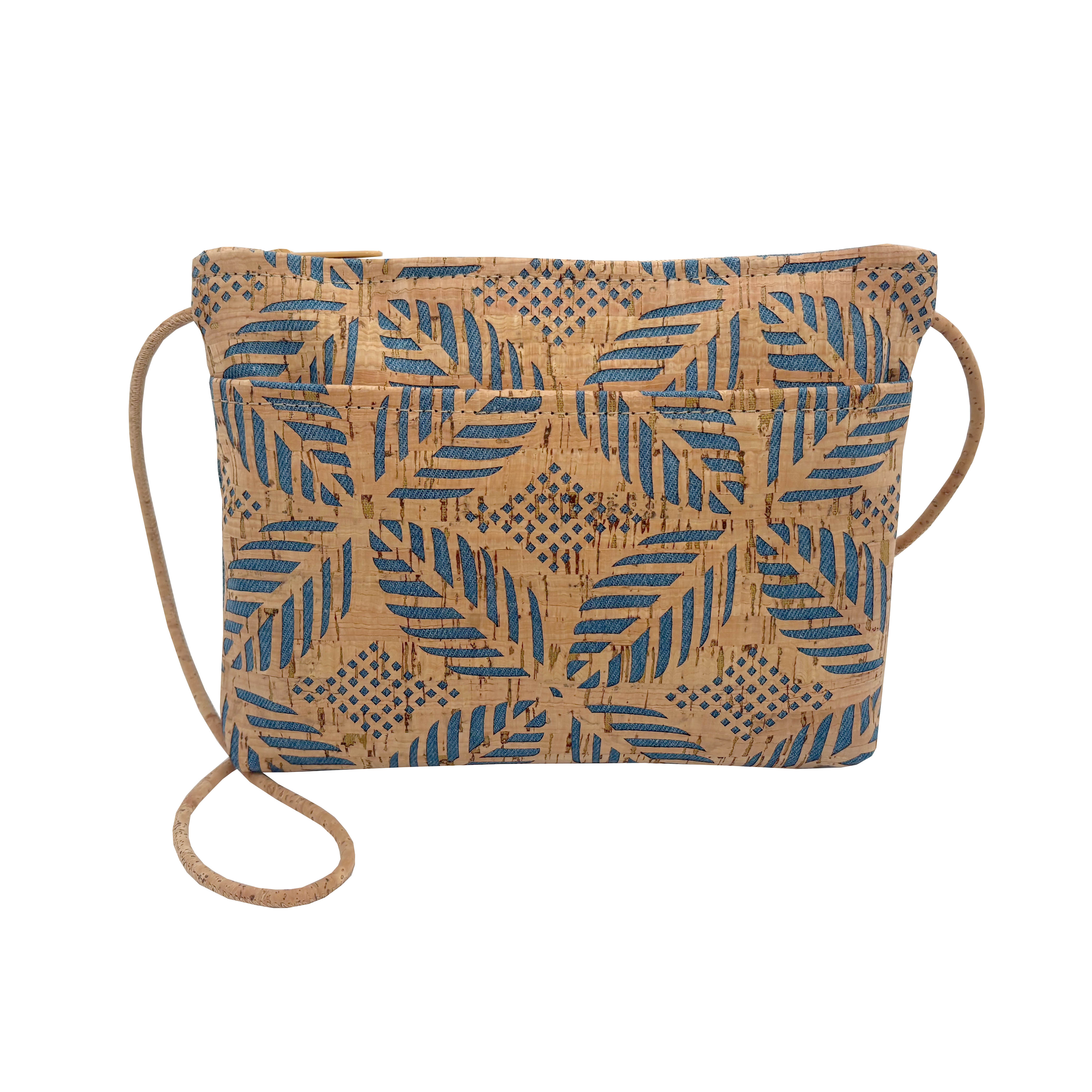 MEDIUM Cork Zip Top Cross Body Bag | Denim Die Cut Palm Cork