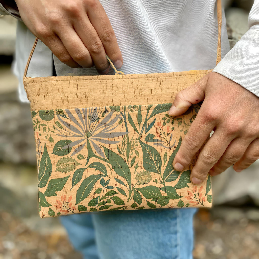 MEDIUM Cork Zip Top Cross Body Bag | Lush Botanicals Print