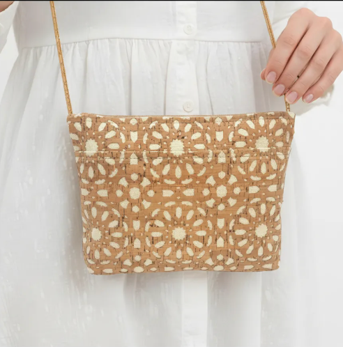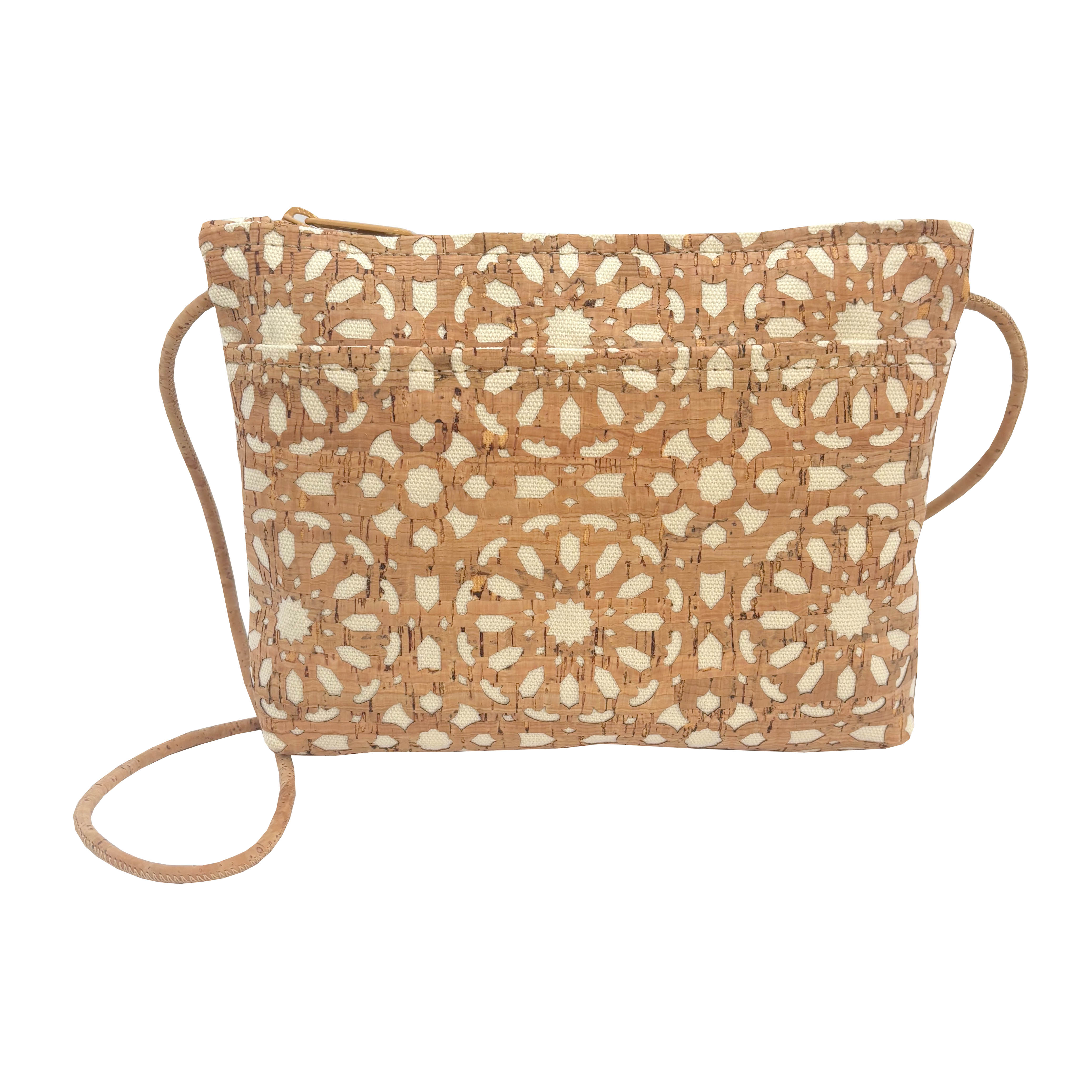 MEDIUM Cork Zip Top Cross Body Bag | Off-White Mandala Die Cut Cork