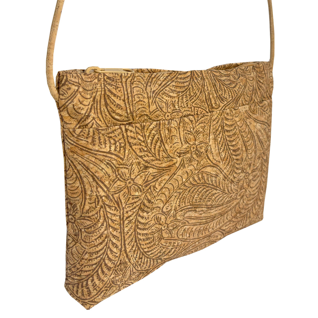 MEDIUM Cork Zip Top Cross Body Bag | Paisley Embossed Cork