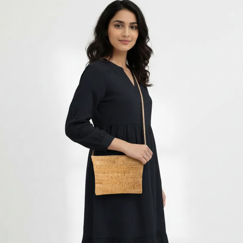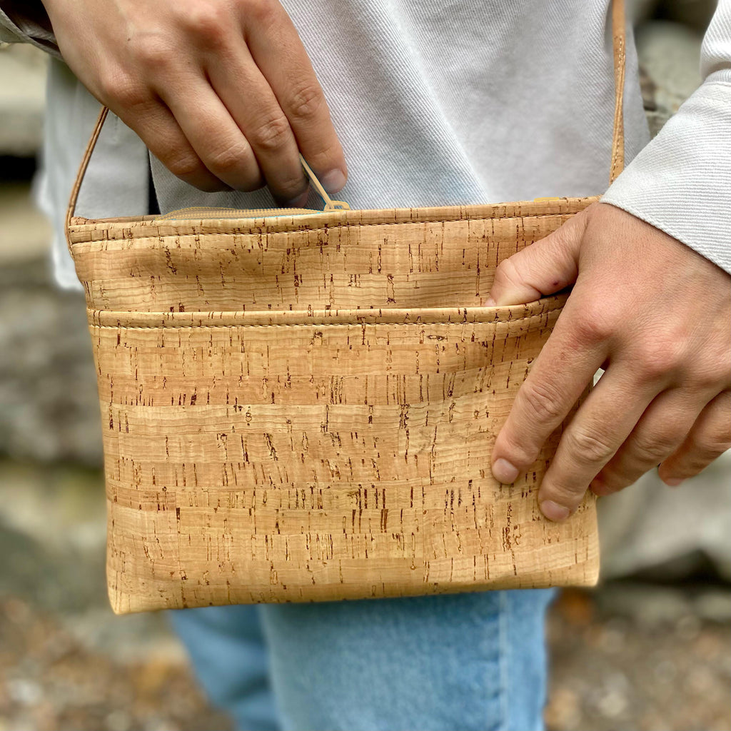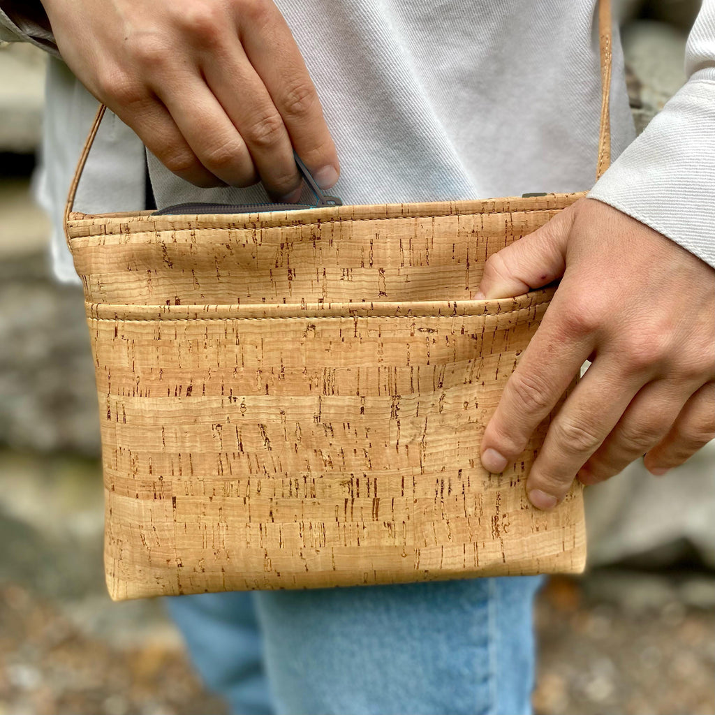 This cork cross body bag is naturally lightweight and waterproof and perfect for everyday or travel. The small size fits just enough for the minimalist...phone, small wallet and other small essentials. The medium size is roomier for those who need to pack a few extra things.