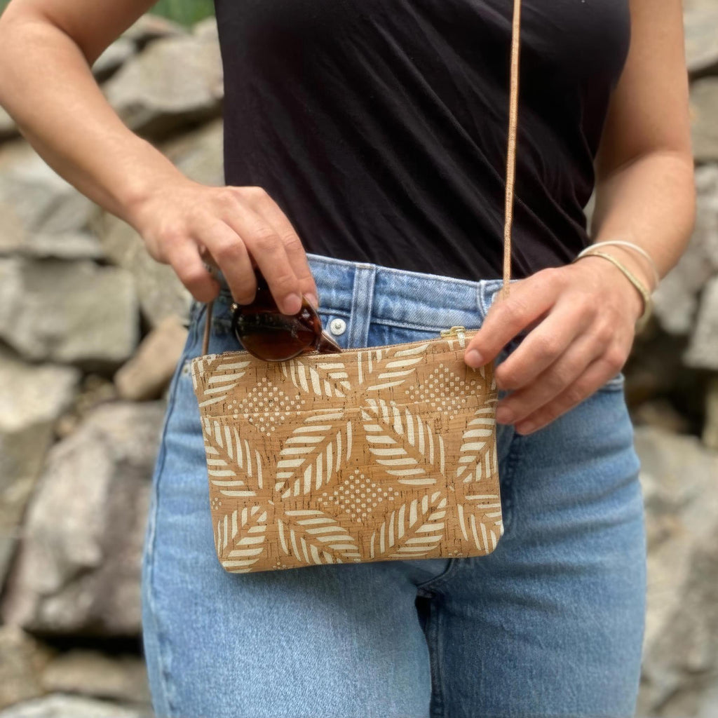 SMALL Cork Zip Top Cross Body Bag | Die Cut Palm Cork