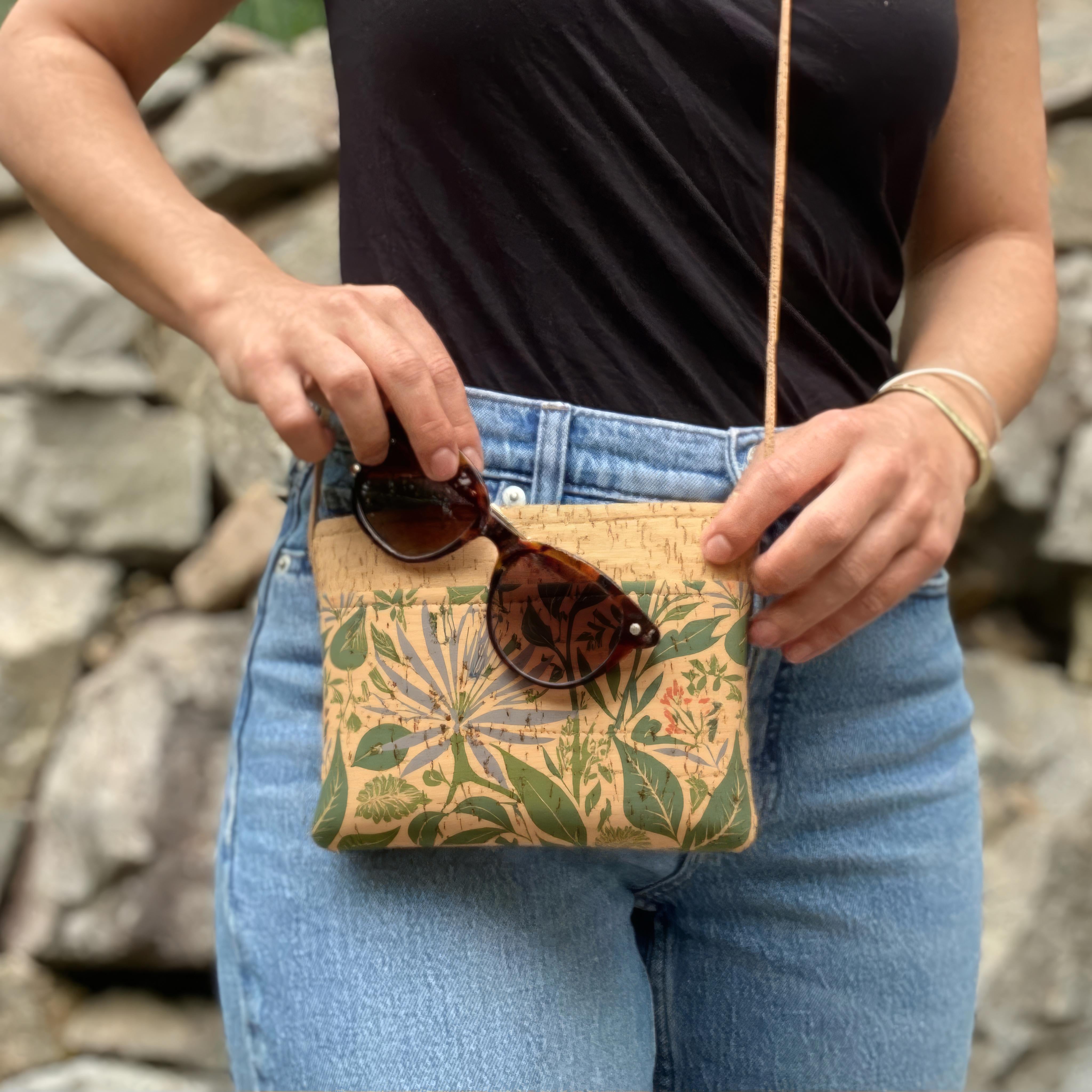 SMALL Cork Zip Top Cross Body Bag | Lush Botanicals Print