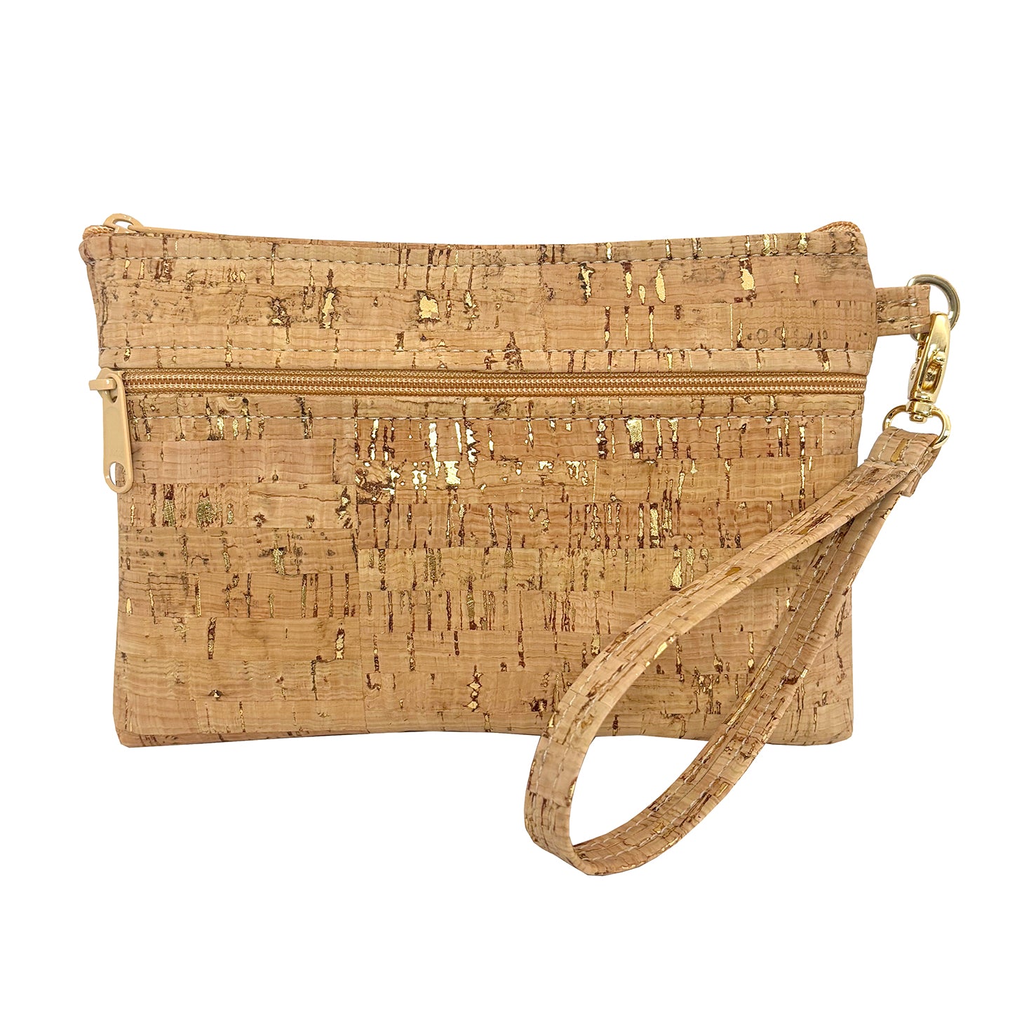 Cork Wristlet with Front Zipper Pocket | Gold Flecked Cork