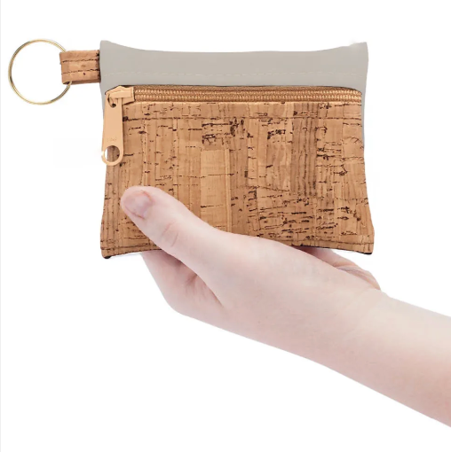 Pack light with this zip pouch key chain! The perfect size for cash and credit cards. Handmade from eco-friendly cork. Read more about The Green Story.