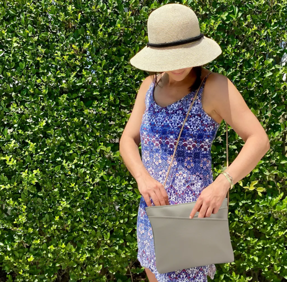 LARGE Zip Top Cross Body Bag | Harbor Gray Faux Leather [SAMPLE SALE]