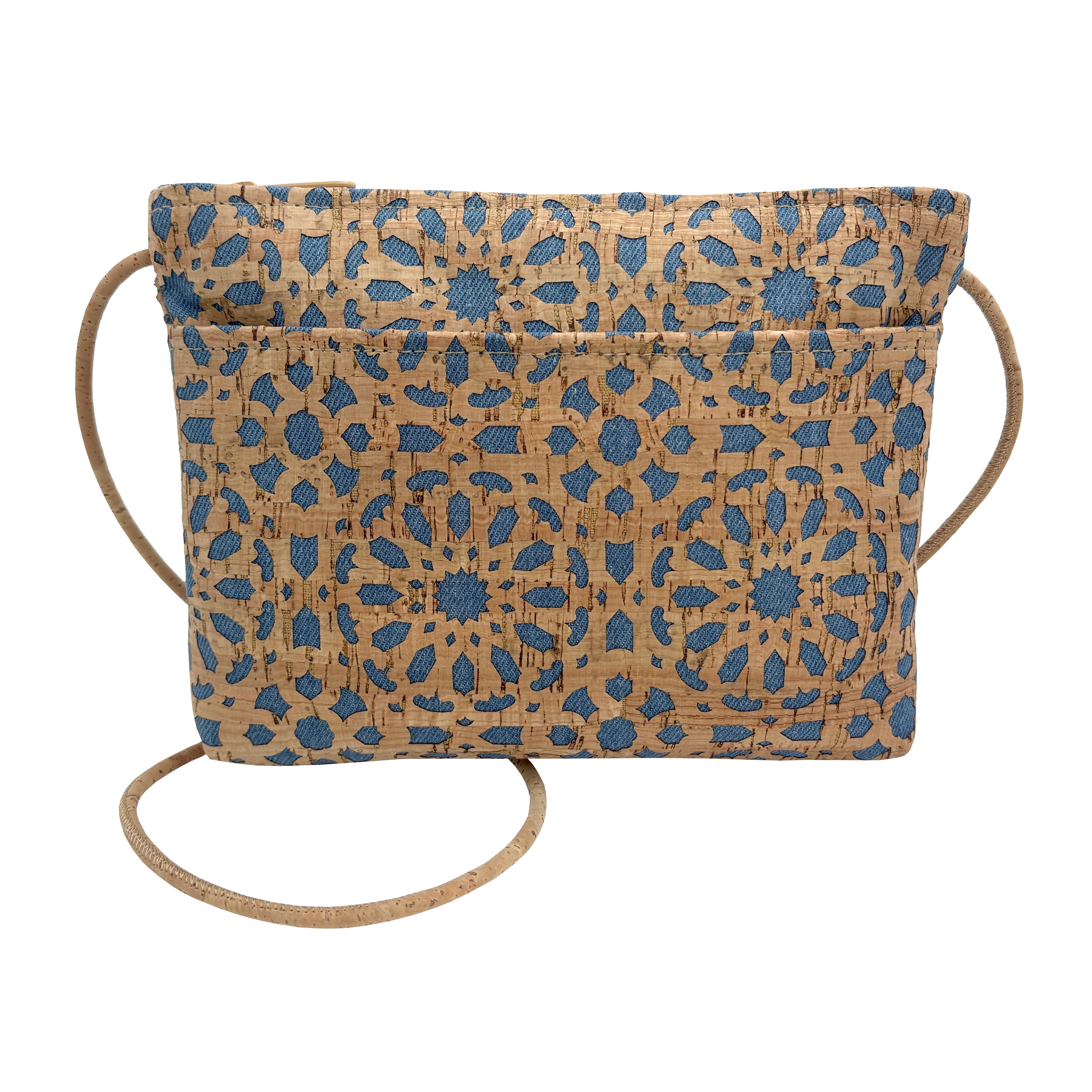 MEDIUM Zip Top Cork Cross Body Bag | Denim Mandala Die Cut Cork [SAMPLE SALE]