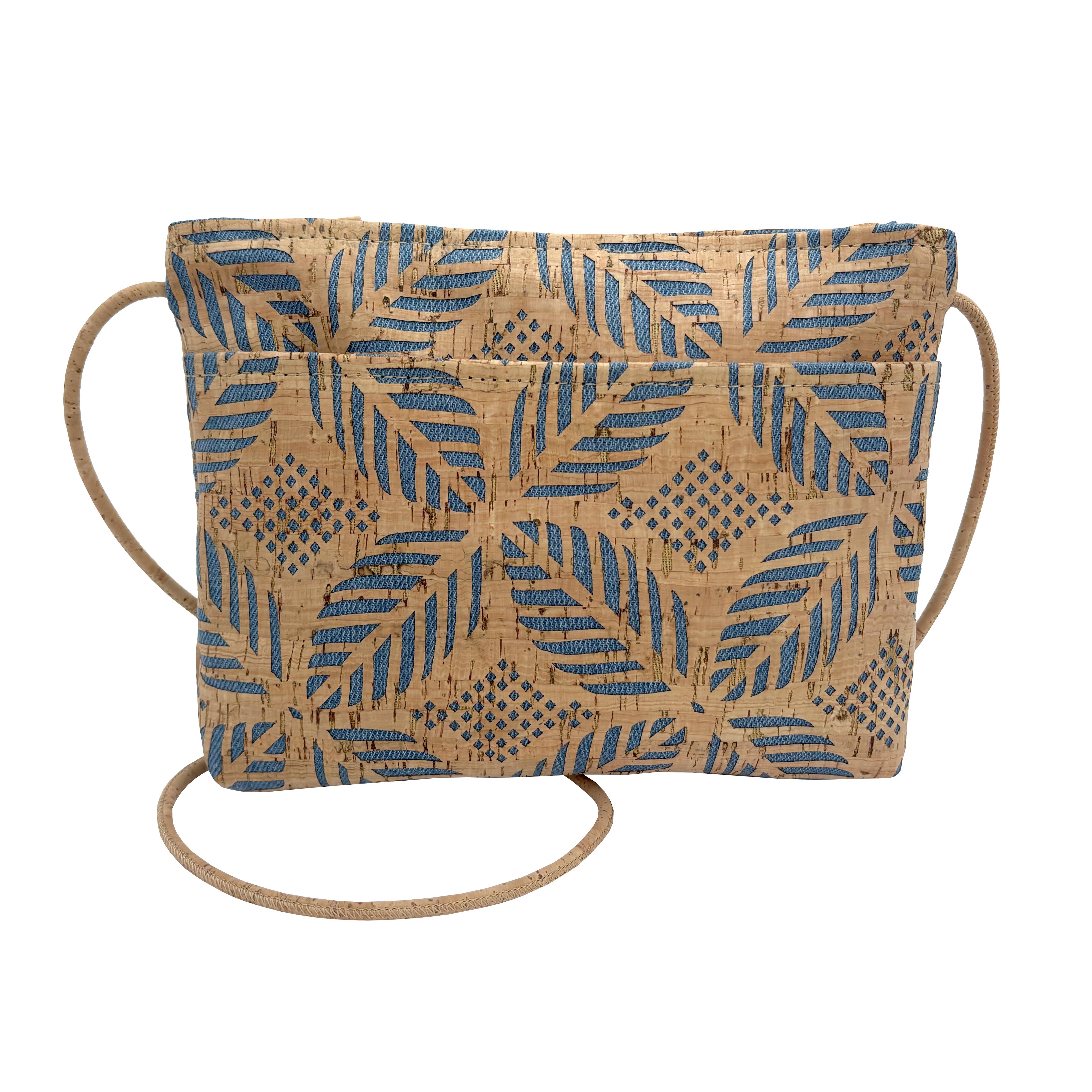 MEDIUM Zip Top Cork Cross Body Bag | Denim Palm Die Cut Cork [SAMPLE SALE]