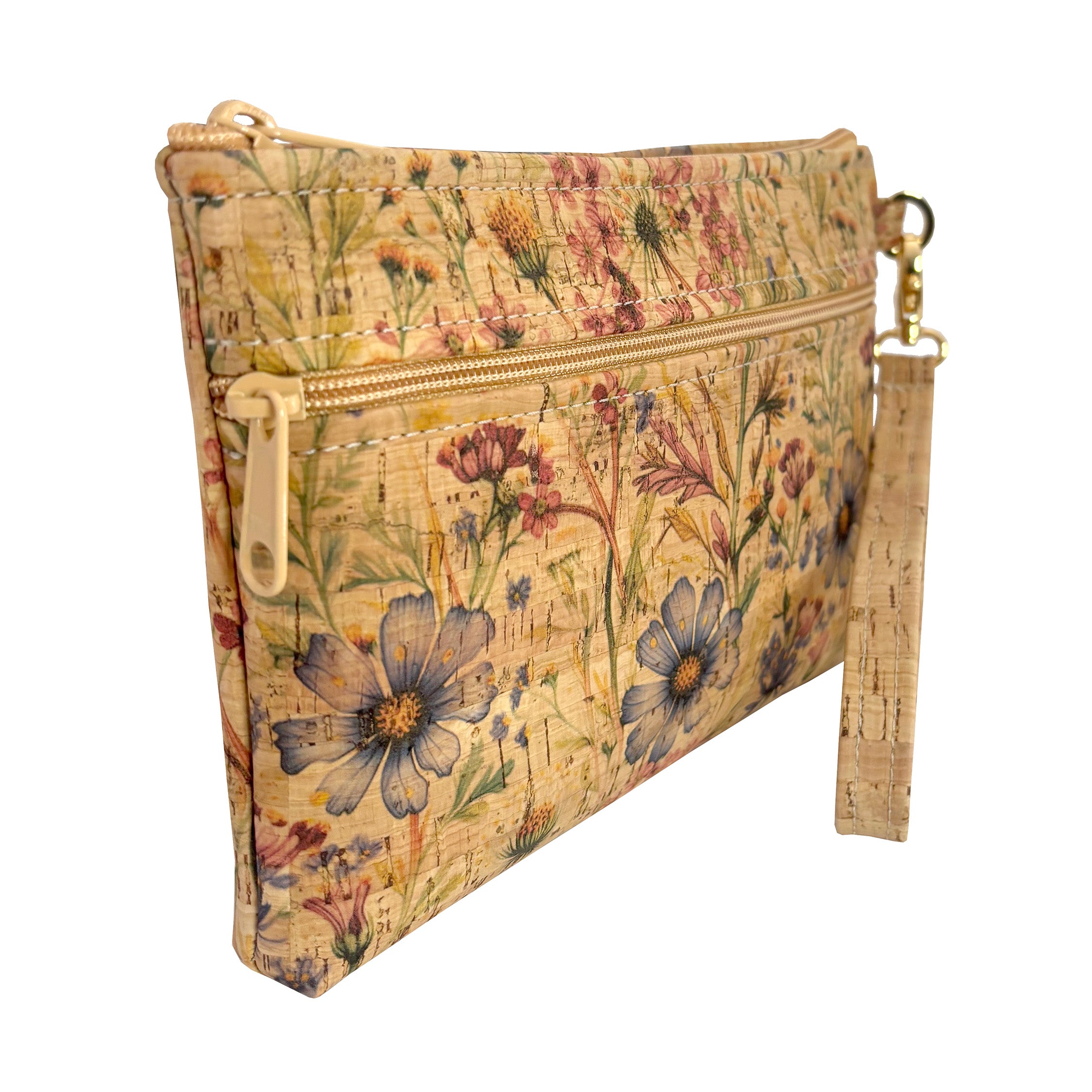 Cork Wristlet with Front Zipper Pocket | Wildflower Whimsy Print
