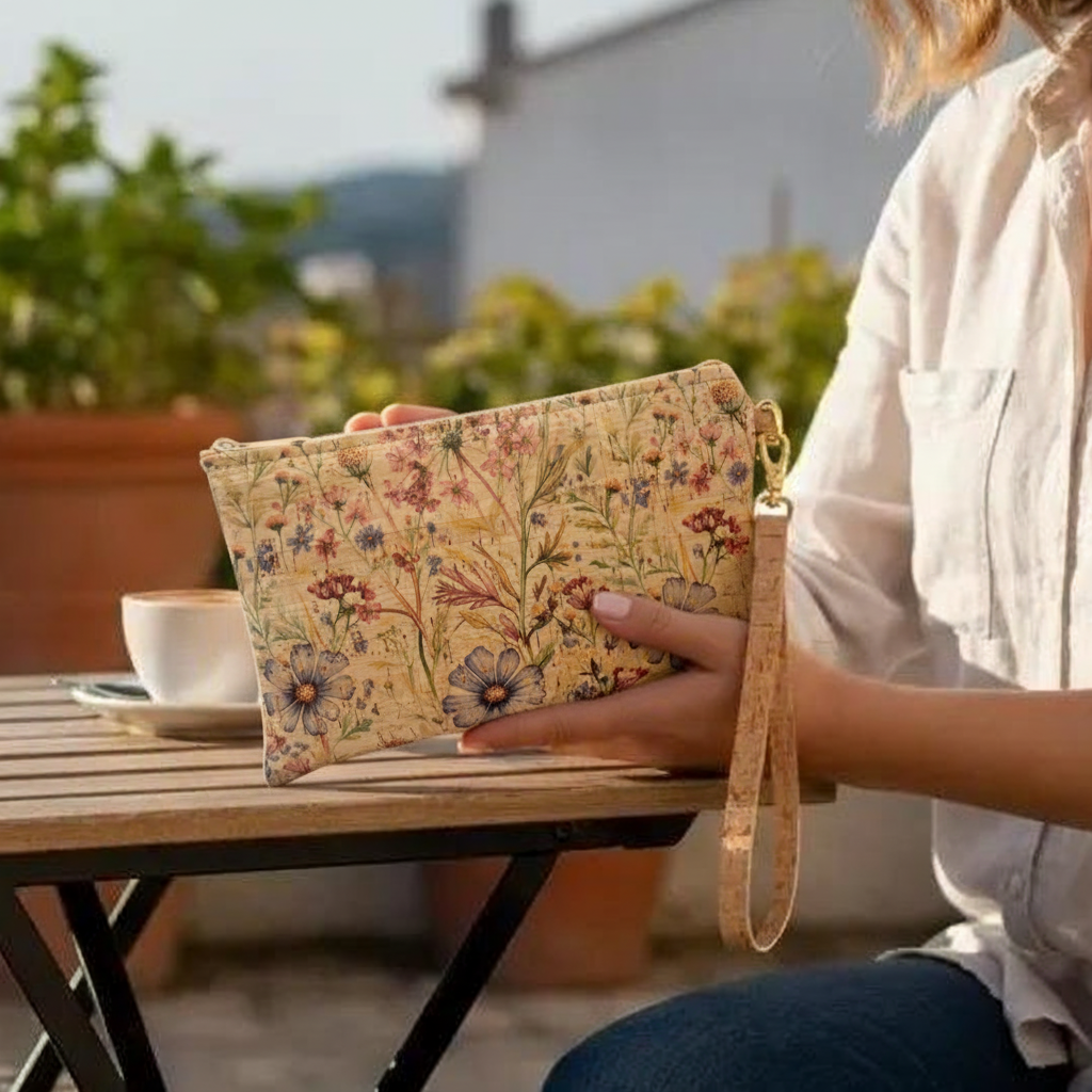 Cork Simple Wristlet in 2 Sizes | Wildflower Whimsy Print