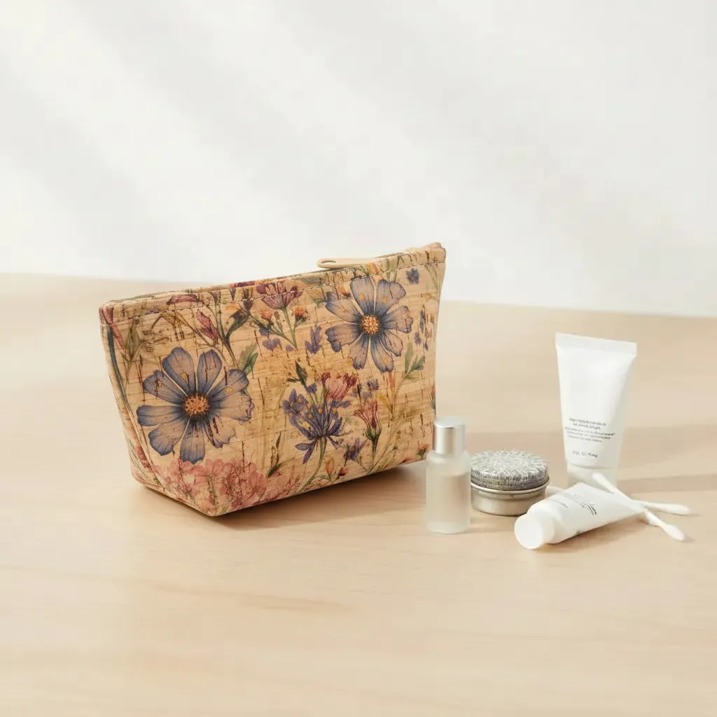 SMALL Cork Zipper Pouch | Wildflower Whimsy Print