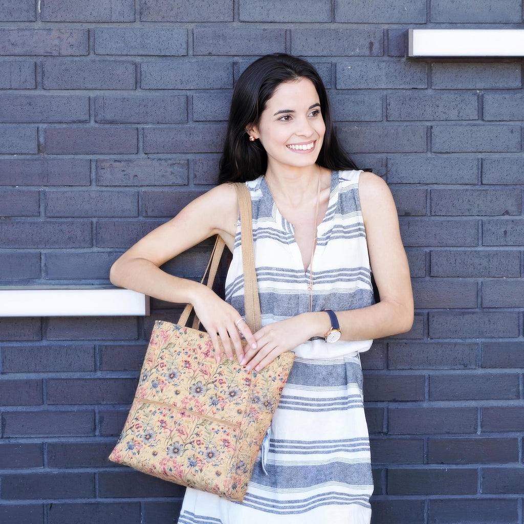 ALL Cork Tote Bag with Front Zipper Pocket | Two Sizes | Wildflower Whimsy Print