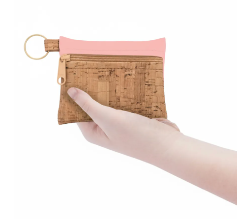 BE ORGANIZED | Key Chain Pouch | Cork + Ballet Pink Faux Leather [SAMPLE SALE]