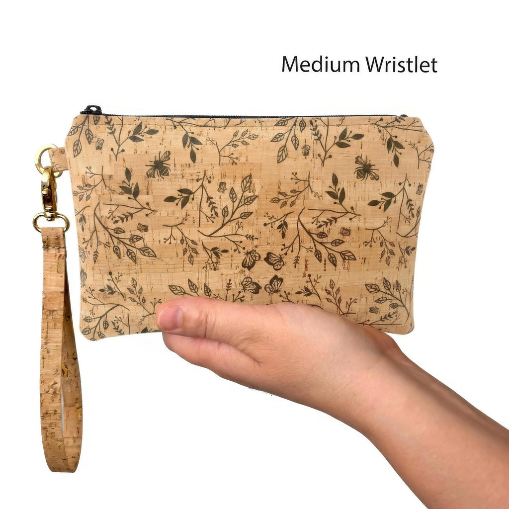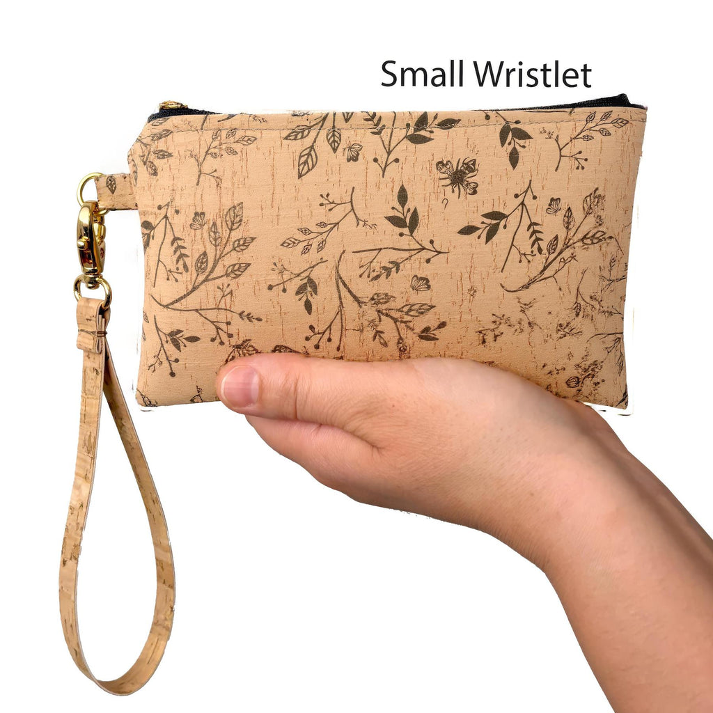 Cork Simple Wristlet in 2 Sizes | Black Floral Print