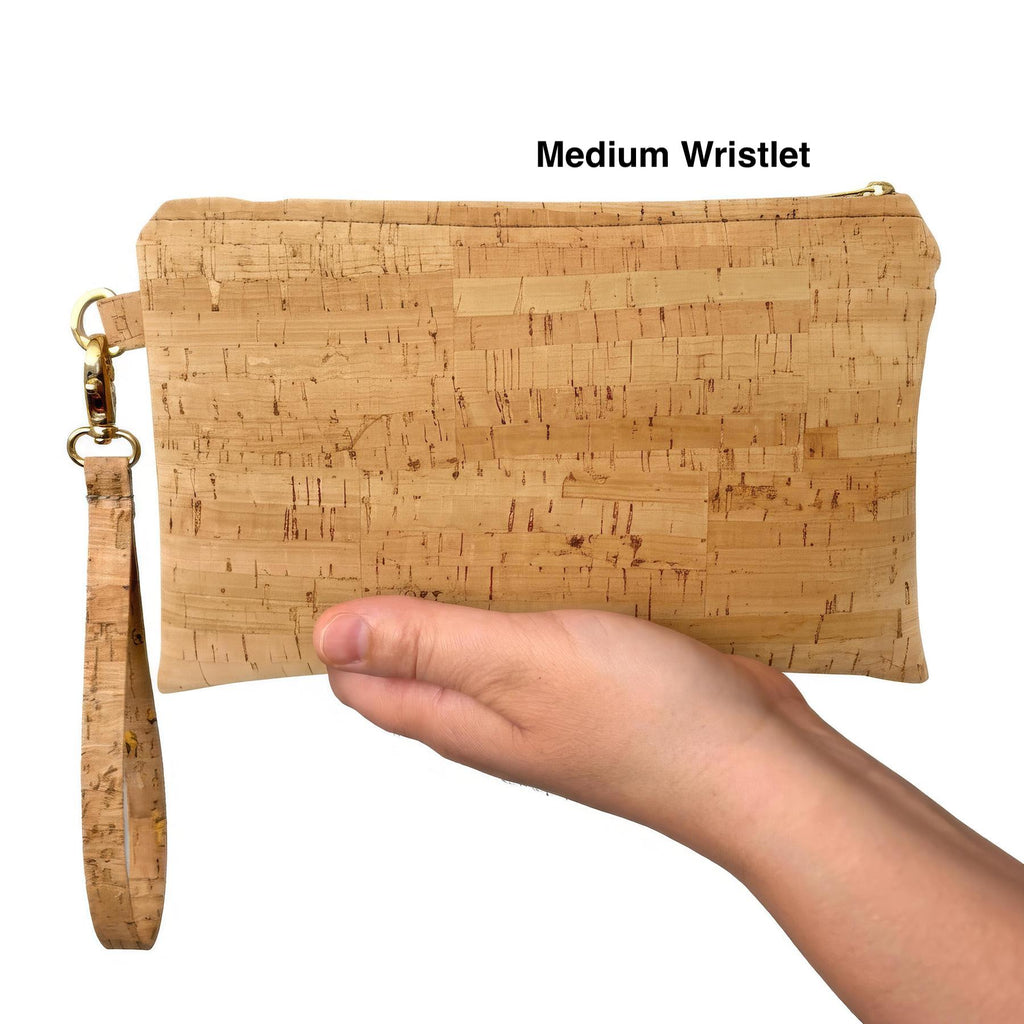 Cork Simple Wristlet in 3 Sizes | Rustic Cork with Colorful Zippers