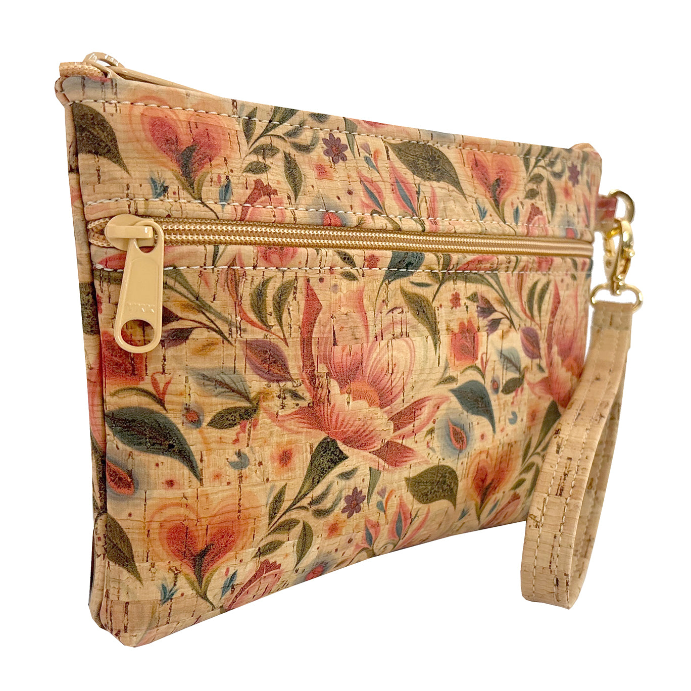 Cork Double Zipper Wristlet | Hearts in Bloom Print