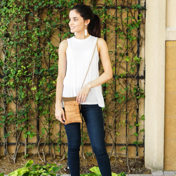 Cork Mini Crossbody Bag | Rustic Cork with Ivy Faux Leather [SAMPLE SALE]