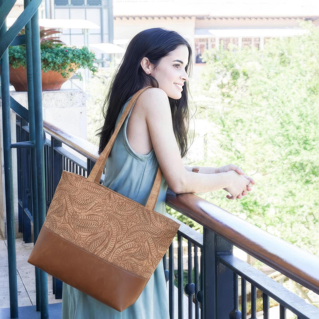 Cork Tote Bag | Small | Paisley Embossed Cork with Bison Faux Leather