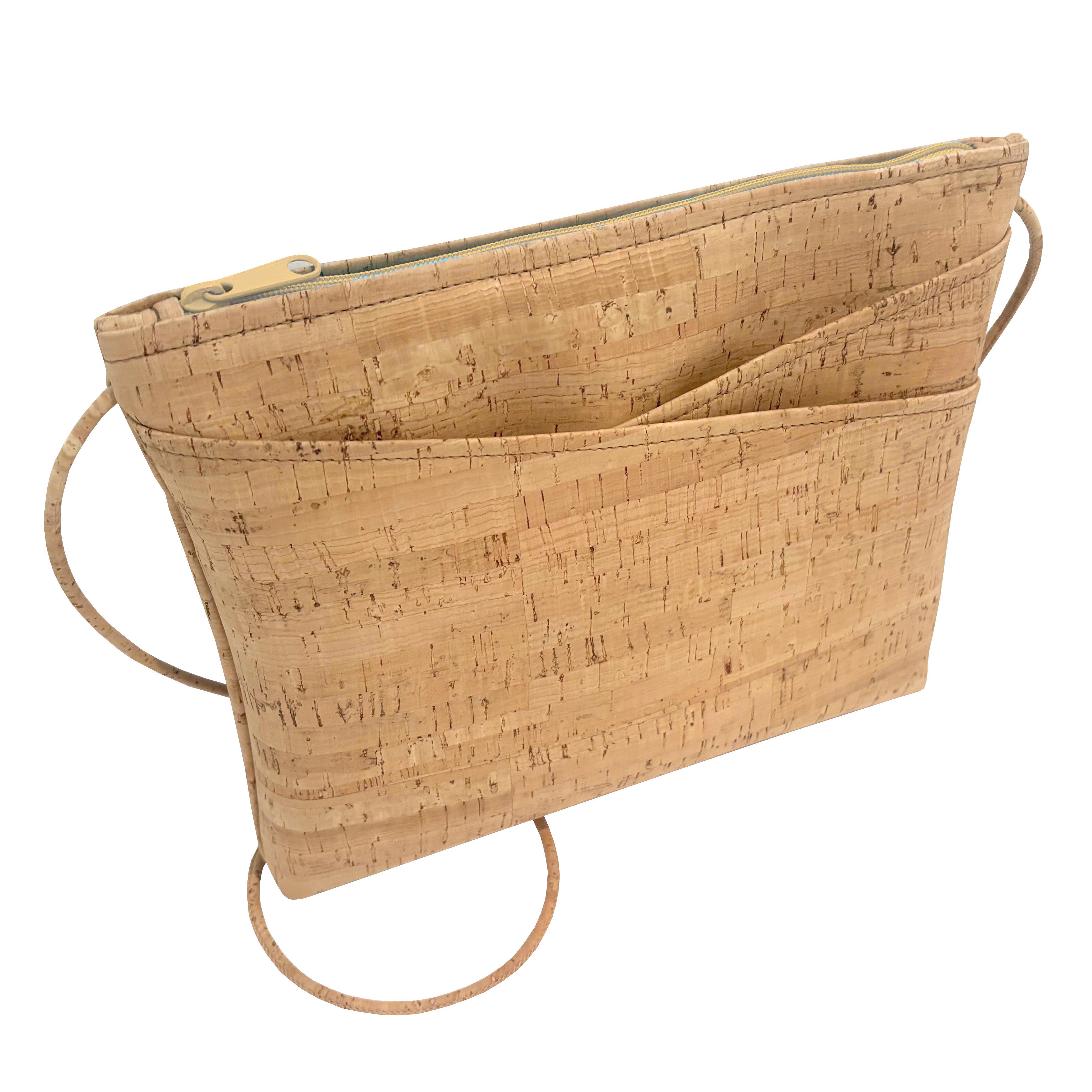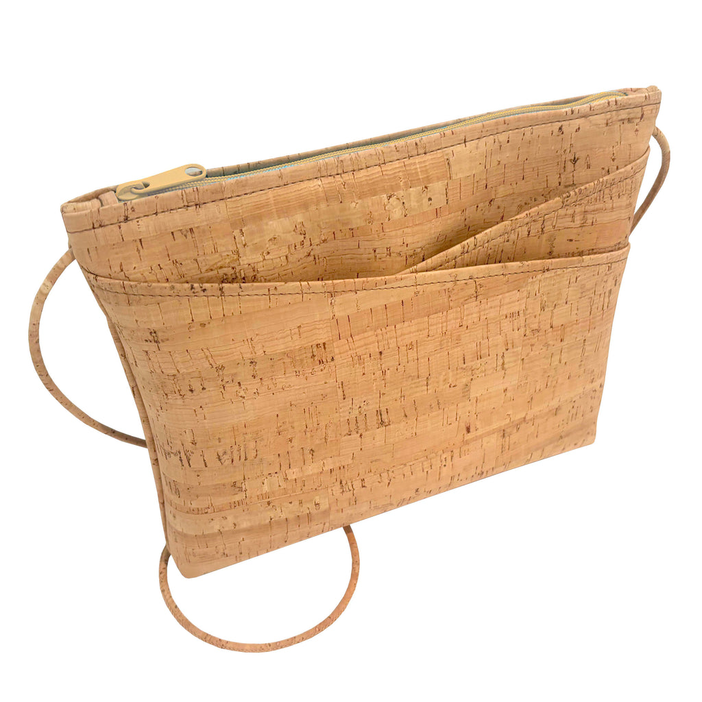 LARGE Cork Zip Top Cross Body Bag | Rustic Cork & Natural Zipper [WHOLESALE]