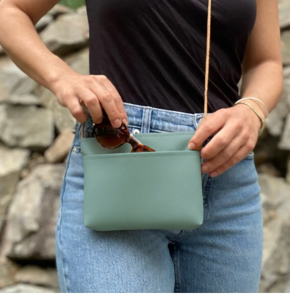 SMALL Zip Top Cross Body Bag | Sea Green Faux Leather [SAMPLE SALE]